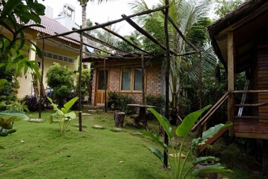 => Bungalow đã xây sẵn, đang cho khách Tây thuê, có nhiều cây cối và giáp suối nên rất mát.